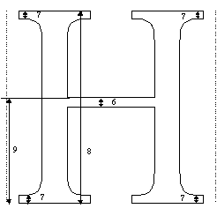 | 2 | 62 | height of serif | H, I |