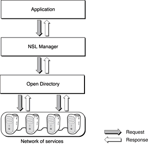 NSLStartServicesLookupfunction.The Network Services Location Manager receives the request and passes it to Open Directory, which passes the request to the appropriate Open Directory plug-in.