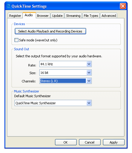 Beginning with QuickTime 7 for Windows, the default install location for QuickTime has been moved from the directory: