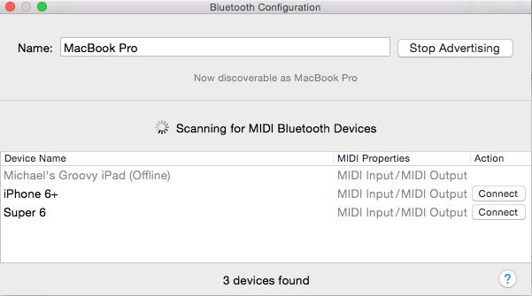 A: With the release of iOS 8 and OS X Yosemite, sending and receiving MIDI data is supported using Bluetooth Low Energy connections on any iOS device or Mac that has native Bluetooth Low Energy support. All established connections are secure which means that pairing is enforced and connections cannot be made to your devices without your explicit consent.