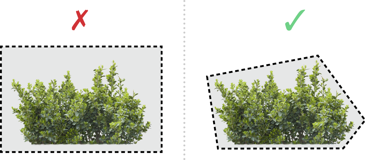 • Trim objects requiring blending or discard instructions to reduce the number of fragments processed. For example, instead of drawing a square to render a 2D sprite texture containing mostly empty space, draw a polygon that more closely approximates the shape of the image, as shown in Figure 7-2. The performance cost of additional vertex processing is much less than that of running fragment shaders whose results will be unused.