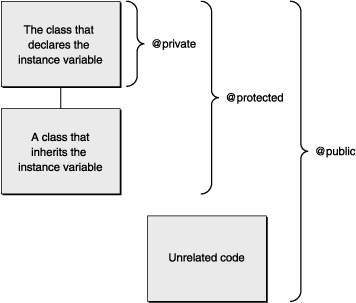 To enforce the ability of an object to hide its data, the compiler limits the scope of instance variables—that is, limits their visibility within the program. But to provide flexibility, it also lets you explicitly set the scope at four levels. Each level is marked by a compiler directive: