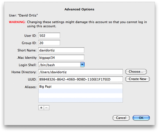 You can edit these attributes using the Accounts preference pane in System Preferences by Control-clicking on the user. See Figure 1-1.