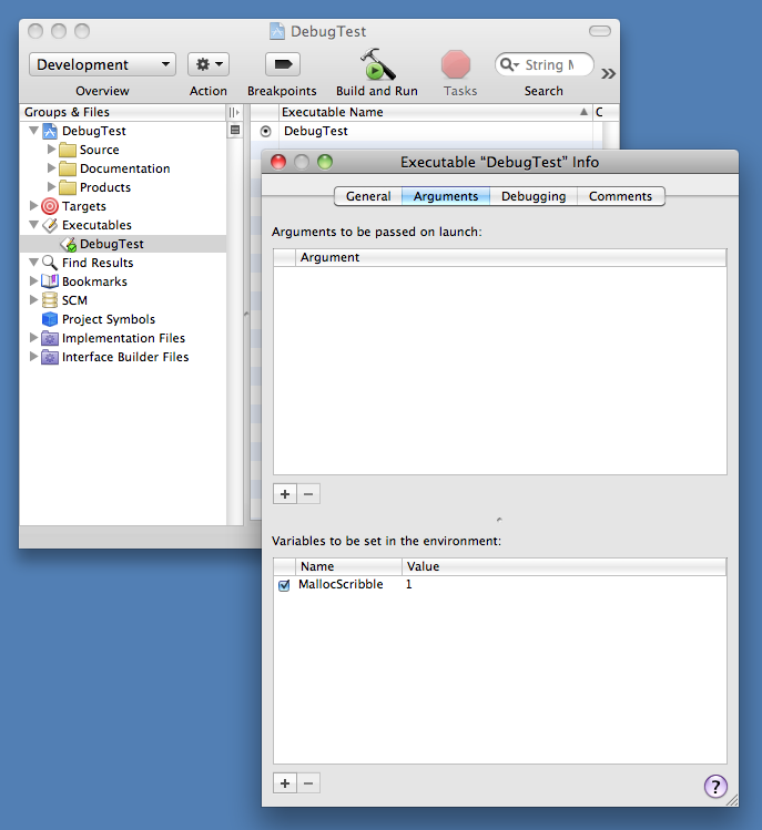 In many cases you can enable a debugging facility by setting a particular environment variable. You can do this using the executable inspector in Xcode. Figure 1 shows an example of this.