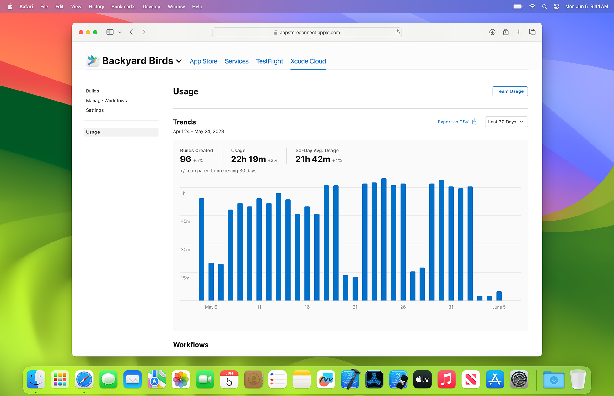 Track the usage and trends of projects, products, and workflows across your team in App Store Connect.